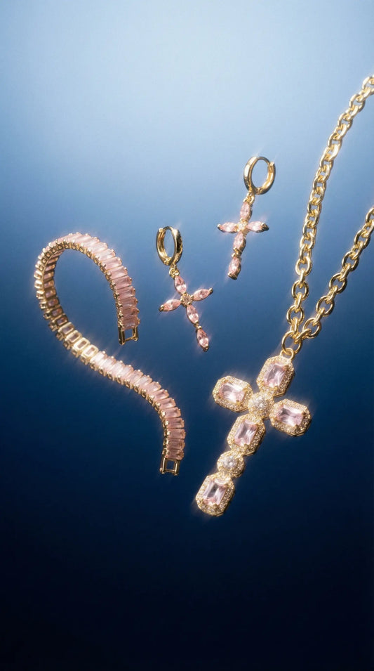 Royal Cross Set — 18K Gold Plated with Crystals