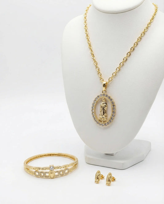 Virgin Mary Oval Medal Set with 18K Gold Plating