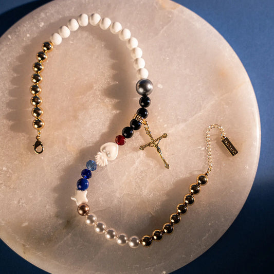 Catholic Necklace with Pearl Cross and Medals – 18k Gold Plated