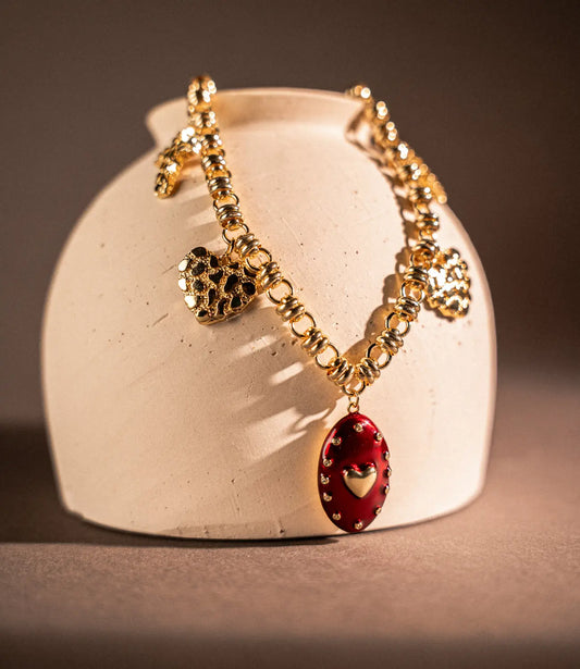 Gold Charms and Red Enamel Necklace | PHOEBE’S