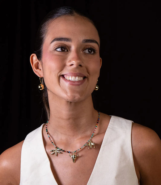 Natural Stone Necklace with Gold Charms – Dragonfly