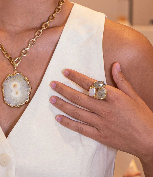 Adjustable Ring with Real Stone: Moonstone or Garnet- Maximalist Jewelry