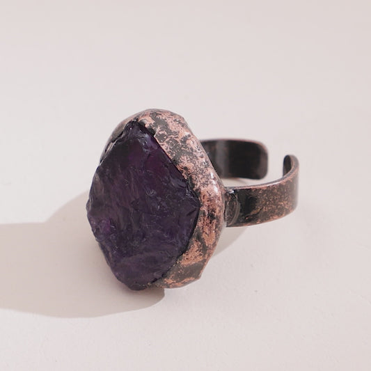 Green Fluorite Ring on Rustic Copper – Calm and Clarity