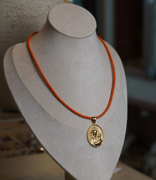 Gold Religious Pendant with Colored Cord – Classic Medals