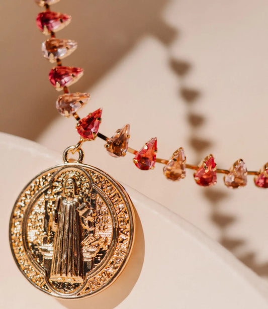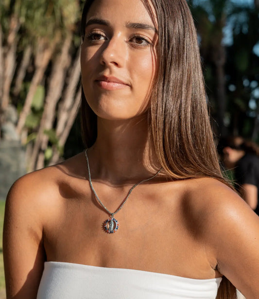 Virgin of Guadalupe Necklace with Multicolor Zirconia – Amulet of Faith and Protection