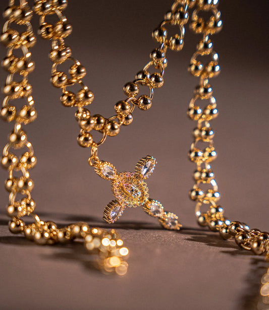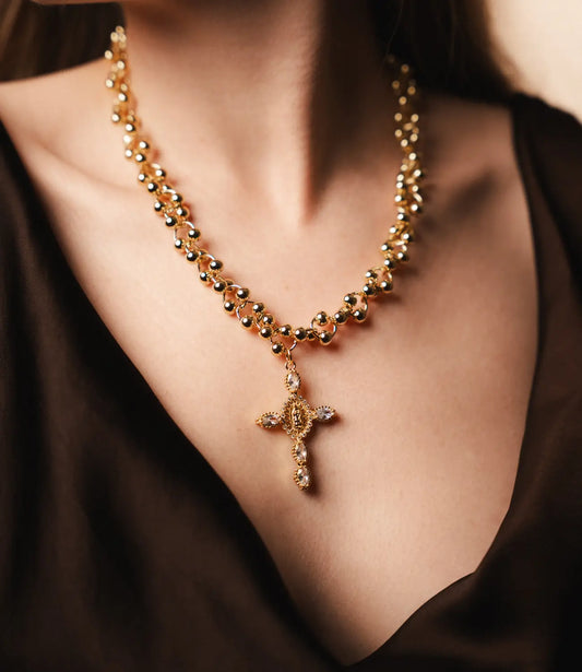 Mar de Tierra – Necklace with golden shells and natural agate stones