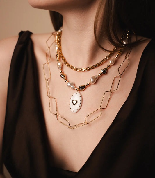 🐚 Multi-layered Bronze Necklace with Glass Seahors