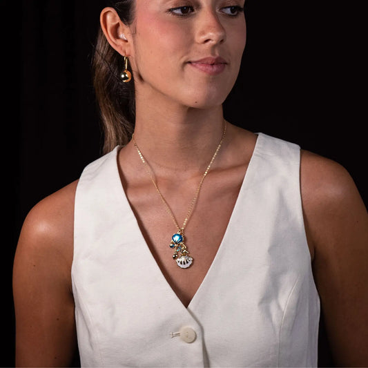 Natural Stone Marine Necklace with Stainless Steel Charms – Ocean Blue