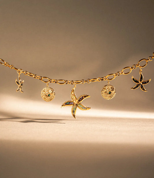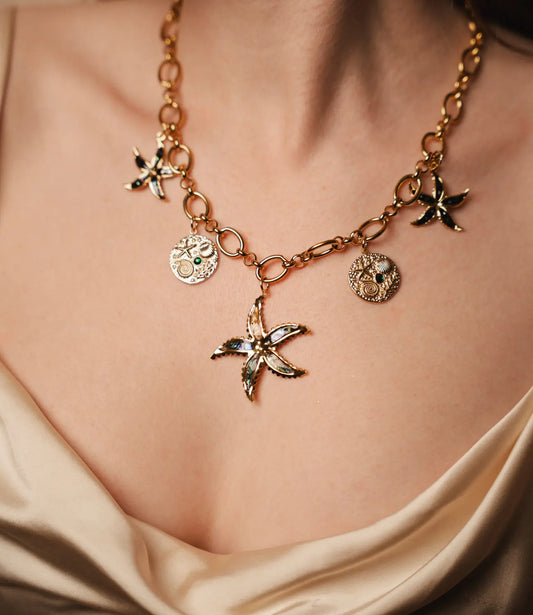 Necklace with Marine Charms – Shell and Starfish 18k gold plated