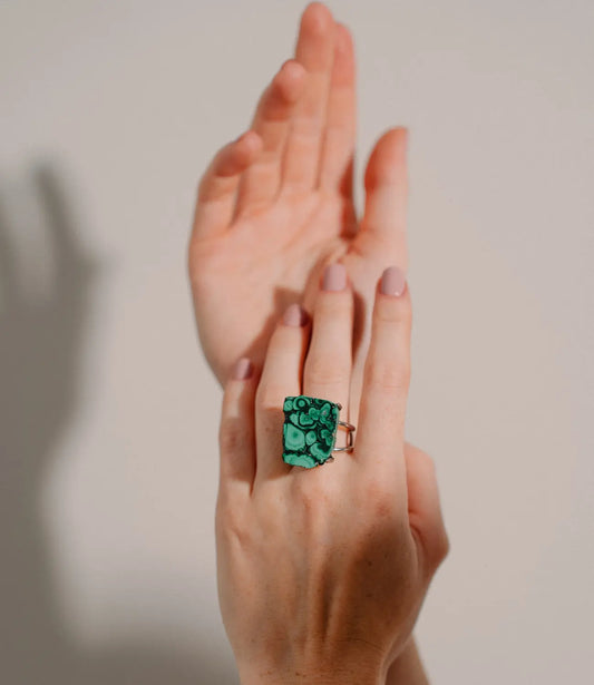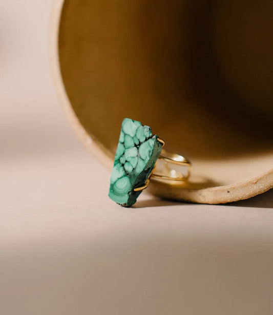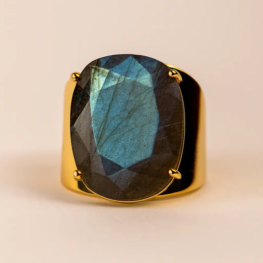 Adjustable 18K Gold Labradorite Ring – Geometric Design