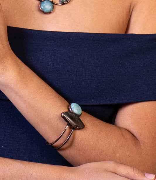 18K Gold-Plated Turquoise and Mother-of-Pearl Open Bracelet