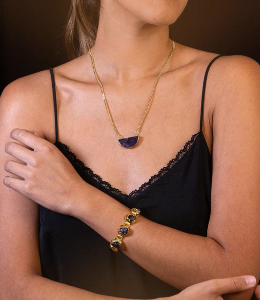 3 Rough Amethyst Bracelet with 18K Gold Plating – Energy, Balance, and Style
