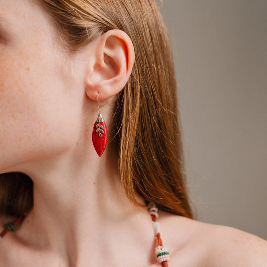Pendientes de coral rojo, pendientes de plata 925, regalo hecho a mano