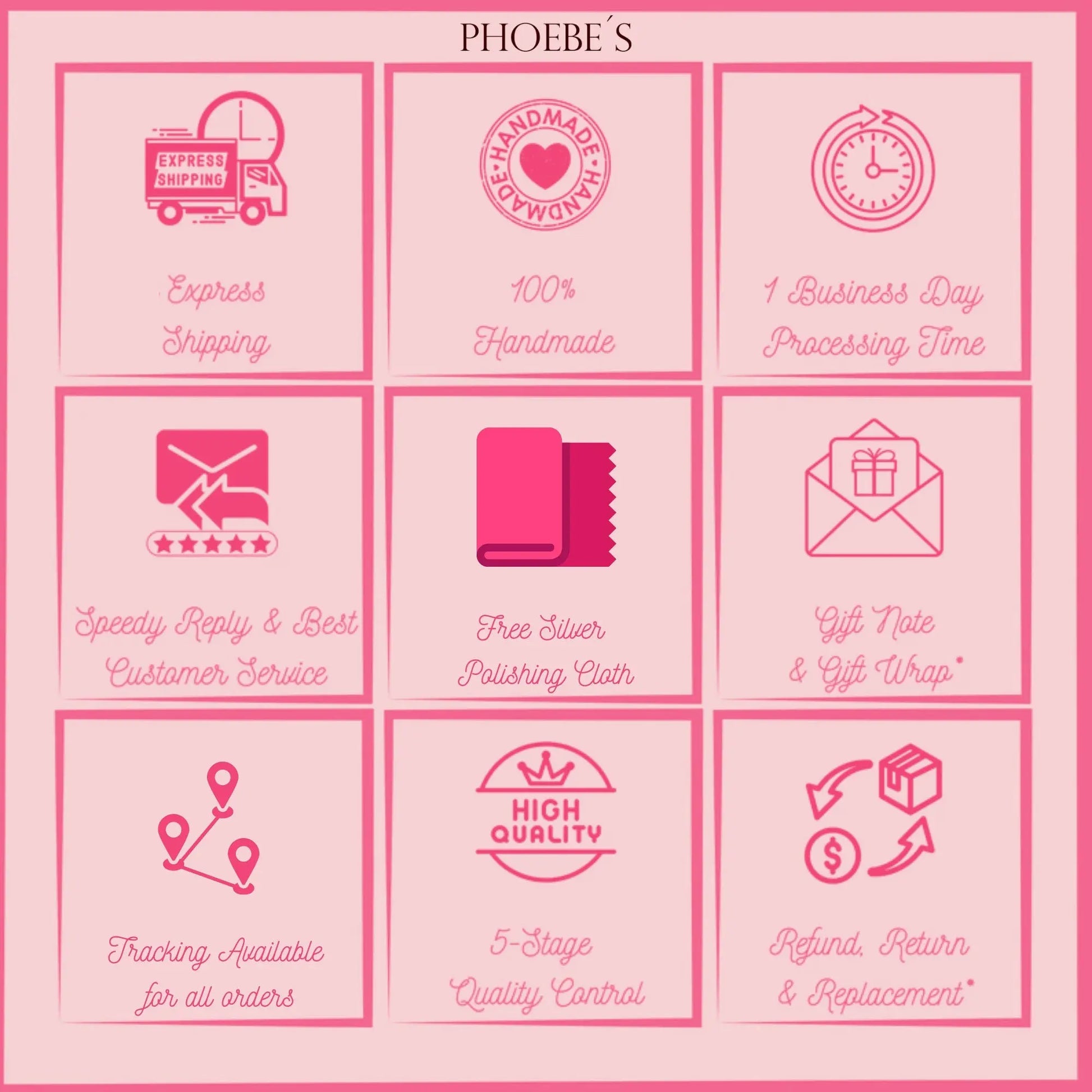 Cada una de nuestras hermosas piezas está hecha con amor y cuidado a partir de materiales de alta calidad. Nos encanta crear hermosas joyas y esperamos que nuestros diseños te traigan tanta alegría como a nosotros al crearlos.