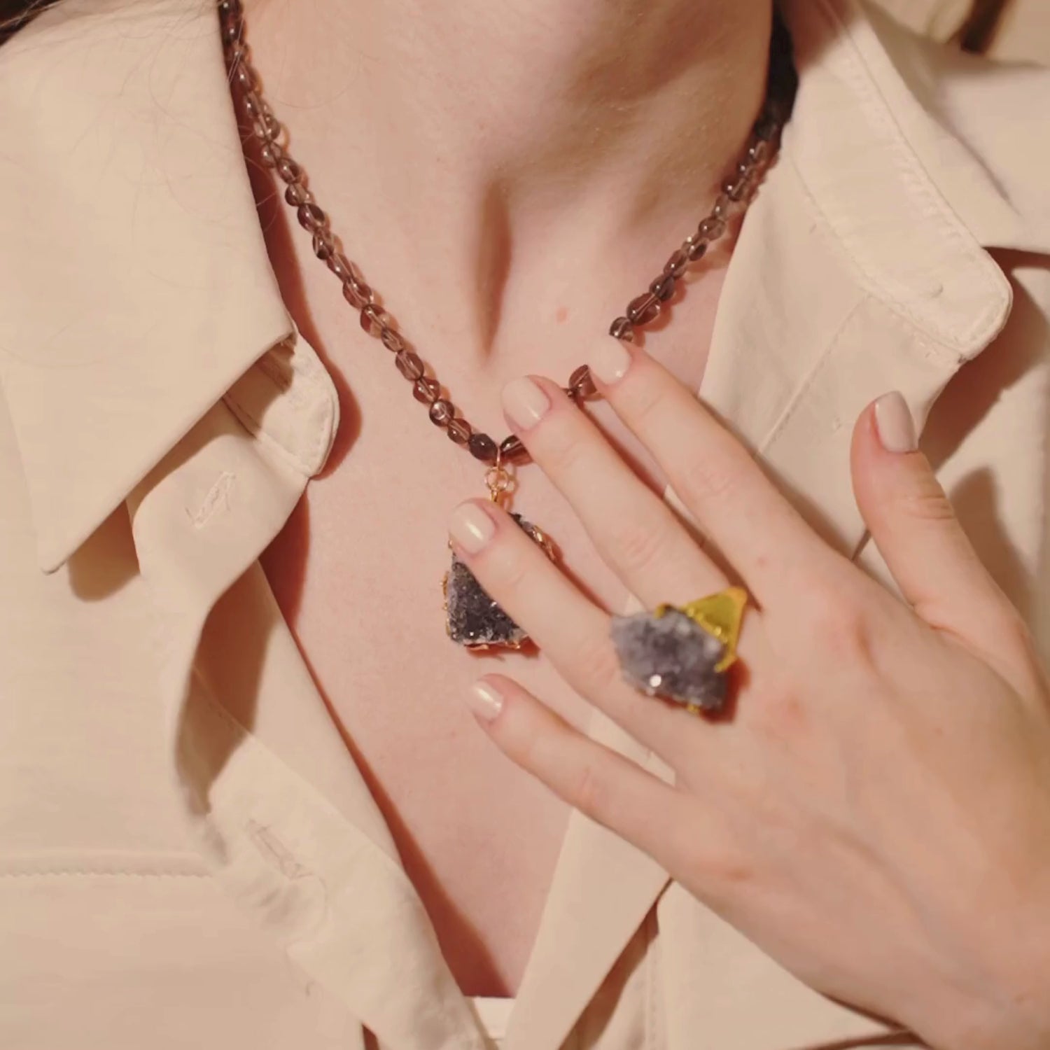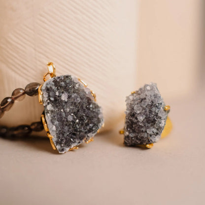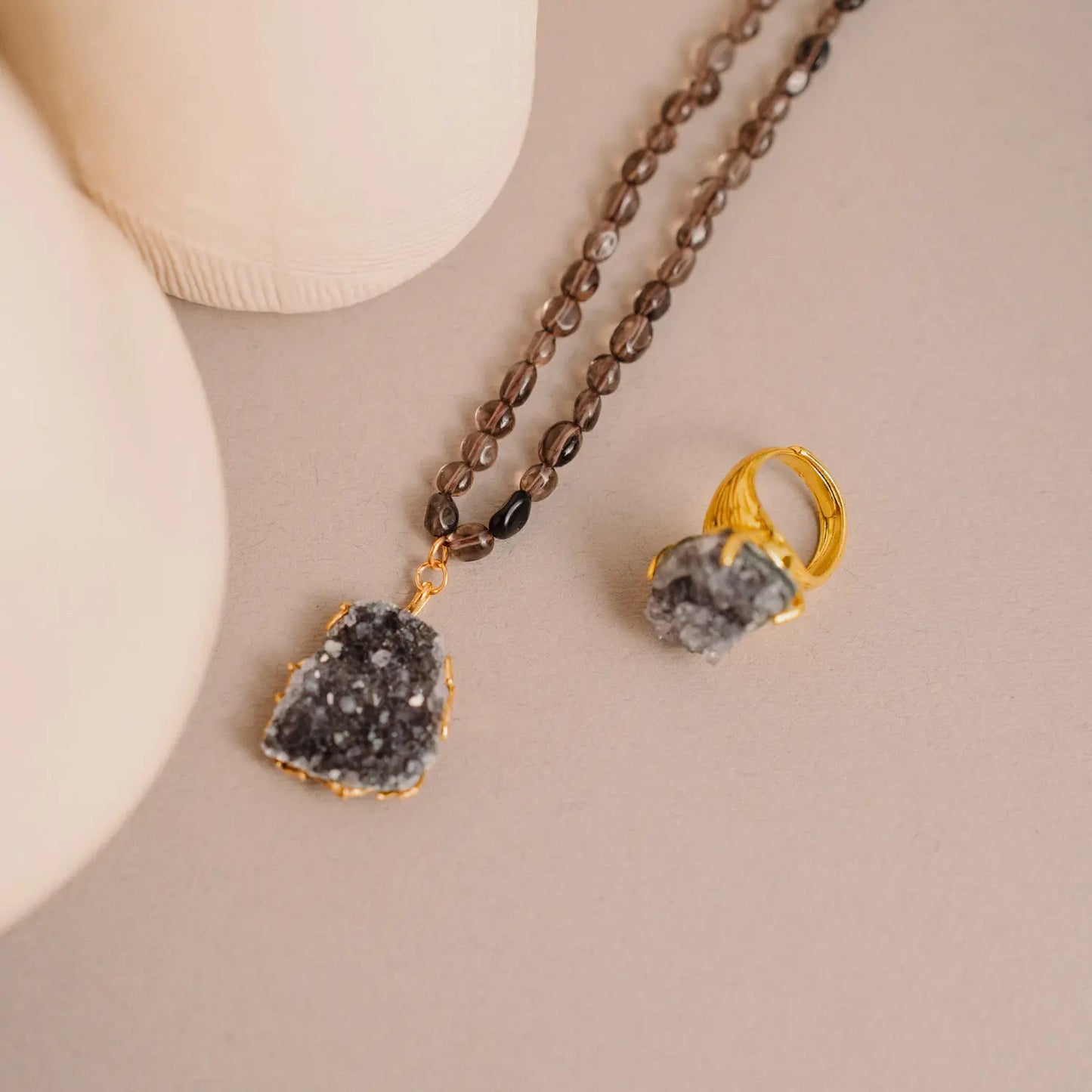 Druzy and Smoky Quartz Bead Jewelry Set | Handmade Gold or Silver plated