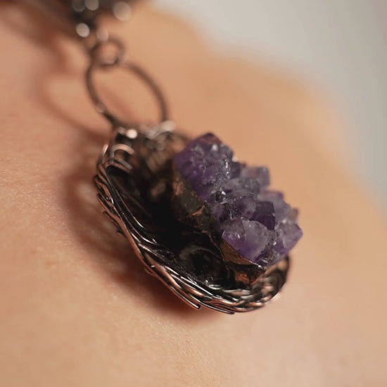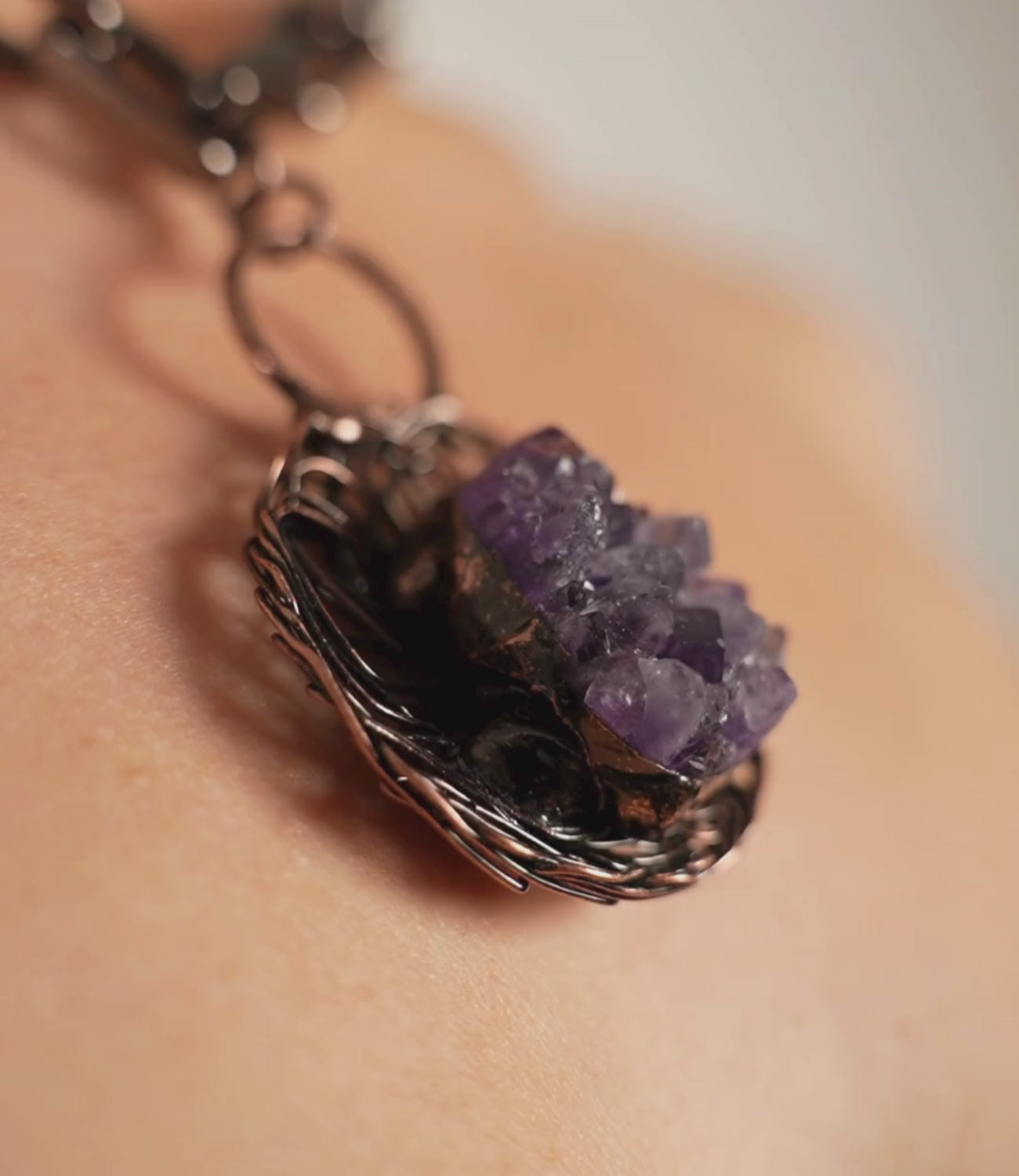**Maximalist Amethyst and Aged Metal Necklace – Power and Mysticism in a Unique Jewel**